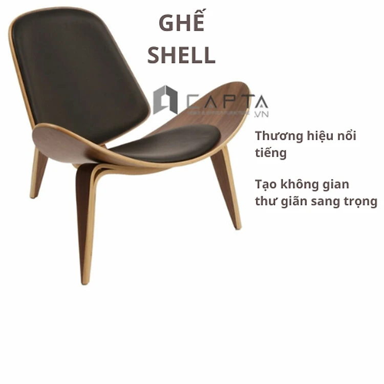 Ghế SHELL thư giãn đọc sách khung gỗ màu walnut Ghế tiếp khách con sò cao cấp