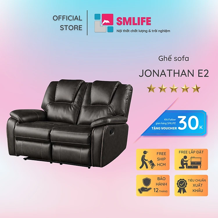 Ghế sofa đôi ngã lưng thư giãn bằng điện sang trọng SMLIFE Jonathan E2 | D157 x R96 x C99cm | nâng hạ lưng ghế