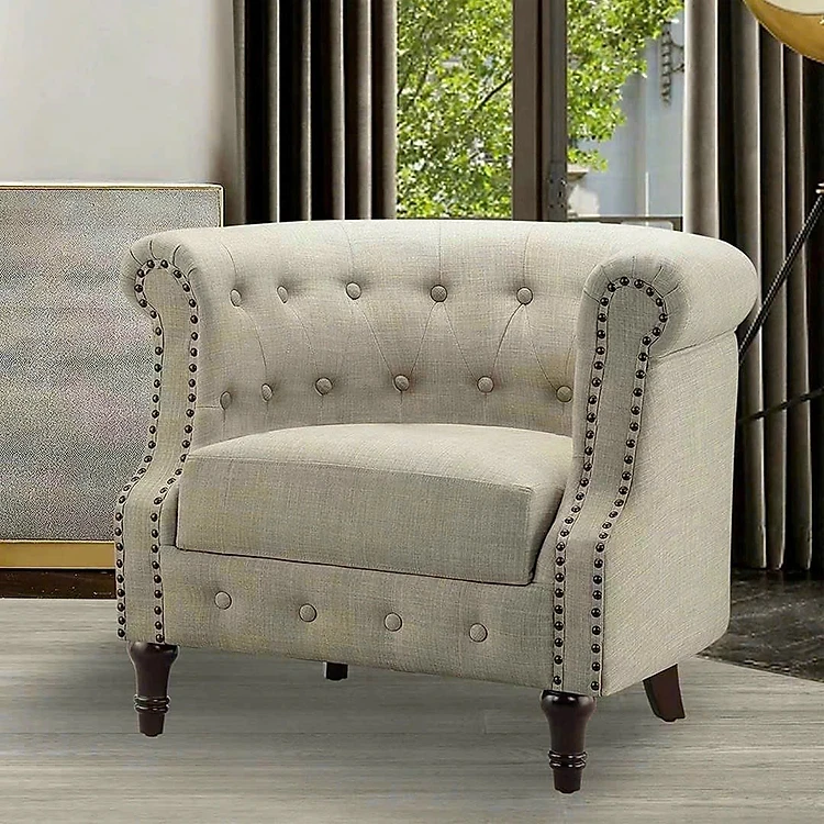 Ghế sofa đơn kiểu tân cổ điển vải Tundo màu kem