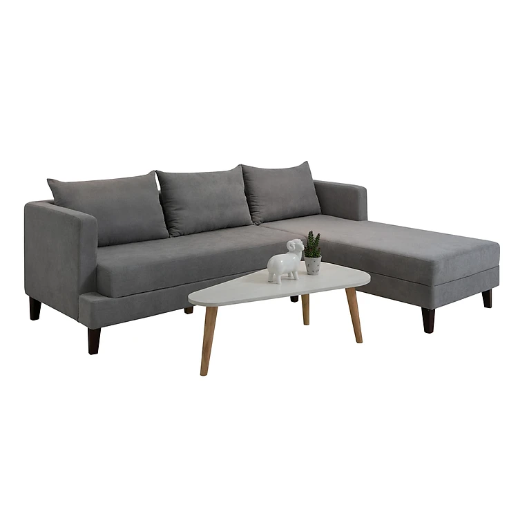 GHẾ SOFA L : D2400 X R850 X C850 (MM) Khung gỗ thông, gỗ mfc chống mối mọt, nệm mousse chống lún, gòn bi , vải bố mềm cao cấp , chân gỗ nâu .
