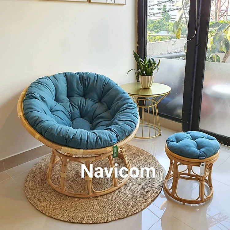 Ghế thư giãn papasan nệm vải bố cao cấp (xanh lam)