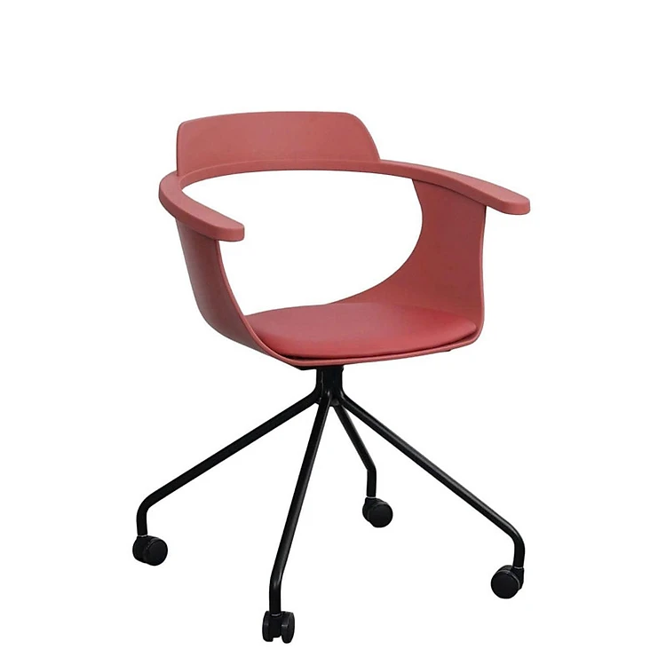 Ghế tiếp khách chân có bánh xe NARA2-S1 Nội thất Capta thân nhựa PP nệm PVC chân sắt sơn tĩnh điện màu đen trắng có bánh xe