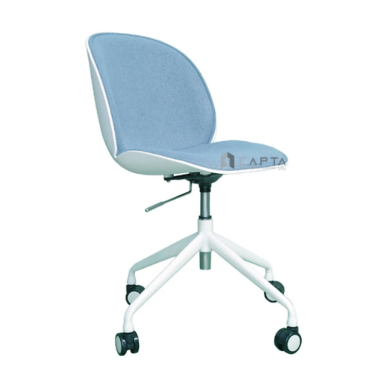 Ghế tiếp khách có bánh xe thân nhựa nệm vải bố màu xám / xanh jean hiện đại Ghế làm việc tăng giảm độ cao Beelte 7-F1