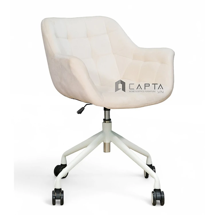 Ghế tiếp khách màu trắng kem CE1022-F Nội thất Capta Ghế nệm vải nhung có chân xoay điều chỉnh độ cao hiện đại