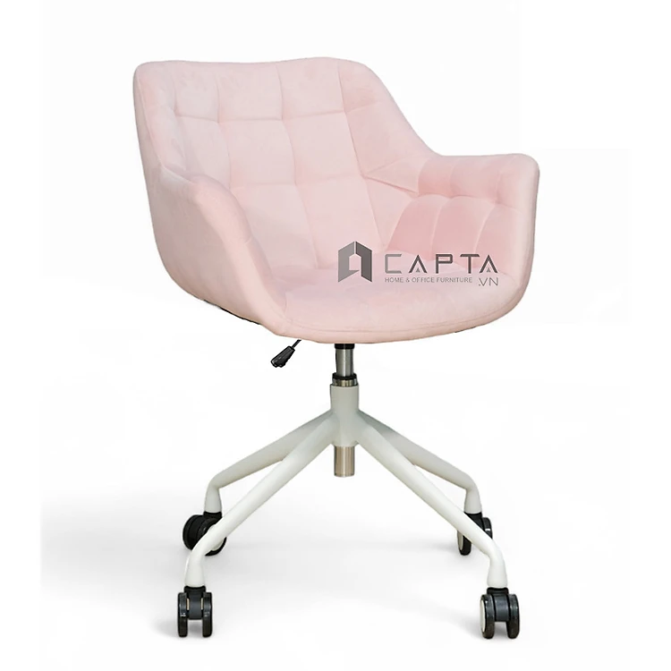 Ghế trang điểm nữ màu hồng có bánh xe CE1022-F Nội thất Capta Ghế làm việc tại nhà nệm vải nhung chân tăng giảm độ cao hiện đại