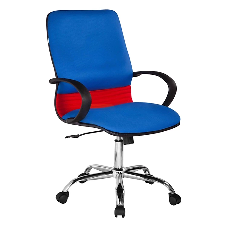 Toàn bộ lưng ghế được làm từ vải nỉ cao cấp, thoáng mát, sử dụng lâu bền không sợ rách và bong tróc. Phần nệm mút dầy tới 10 ly vô cùng êm ái, góp phần làm giảm áp lực cho người sử dụng trong môi trường làm việc căng thẳng. Hai tay vịn bằng nhựa PP đúc sang trọng, chắc chắn. Chân thép mạ crom chống rỉ sét. Bộ bánh xe PU đúc giúp bạn dễ dàng xoay tròn và di chuyển. Cần nâng hạ độ cao rất nhẹ nhàng, dễ điều chỉnh cho người sử dụng nhờ bộ ly hợp hiện đại và bộ piston khí nén cao cấp nhập khẩu.