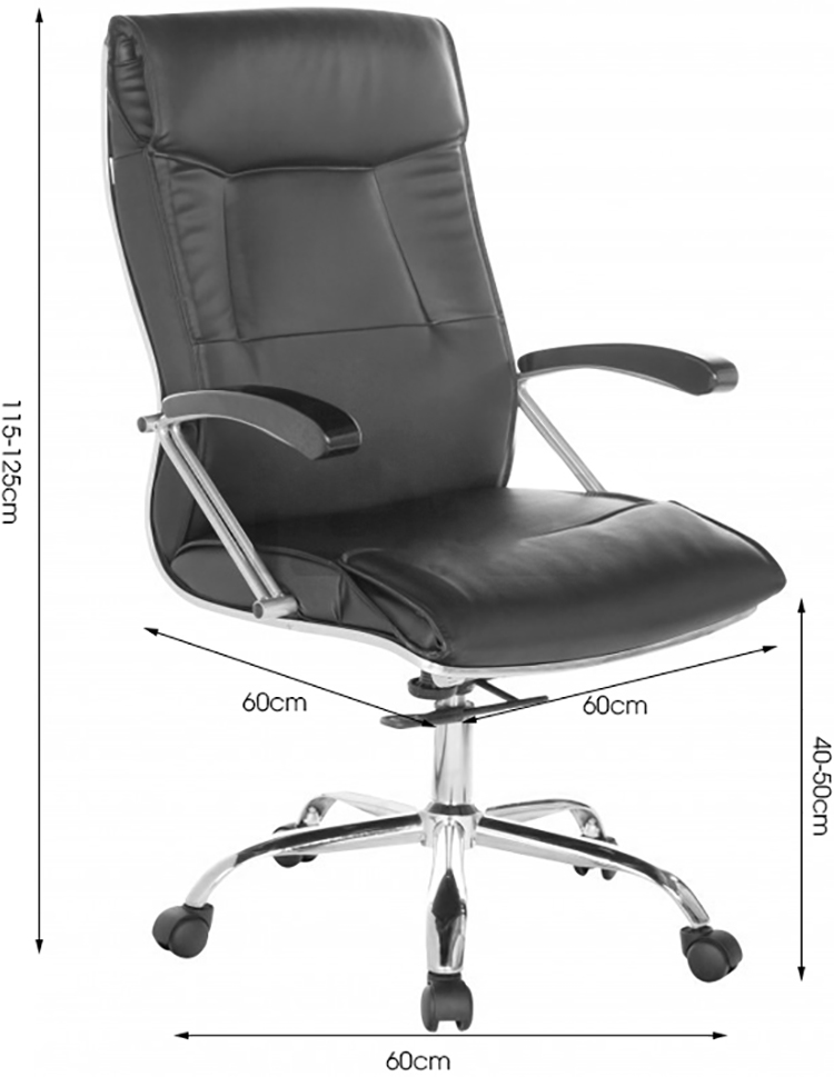 Toàn bộ lưng ghế được làm từ da PVC cao cấp, thoáng mát, sử dụng lâu bền không sợ bong tróc. Phần nệm mút dầy tới 10 ly vô cùng êm ái, góp phần làm giảm áp lực cho người sử dụng trong môi trường làm việc căng thẳng. Hai tay vịn bằng xi sắt ốp gỗ uốn cong sang trọng, chắc chắn, không bị cong vênh hay mối mọt qua thời gian sử dụng. Chân nhôm nhập khẩu cao cấp. Bộ bánh xe PU đúc giúp bạn dễ dàng xoay tròn và di chuyển. Cần nâng hạ độ cao rất nhẹ nhàng, dễ điều chỉnh cho người sử dụng nhờ bộ ly hợp hiện đại và bộ piston khí nén cao cấp nhập khẩu. Khung ghế được làm nguyên khối thép, cấu tạo vững chắc, có khả năng chịu được trọng lượng cao và chịu sự tác động của lực rất tốt, đảm bảo độ bền sử dụng lâu dài theo thời gian.