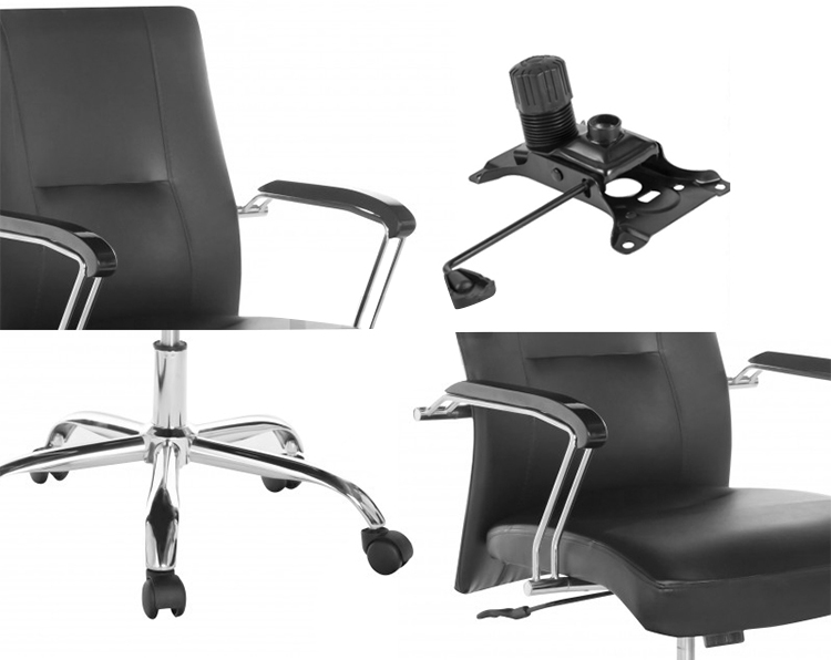 Toàn bộ lưng ghế được làm từ vải nỉ cao cấp, thoáng mát, sử dụng lâu bền không sợ rách và bong tróc. Phần nệm mút dầy tới 10 ly vô cùng êm ái, góp phần làm giảm áp lực cho người sử dụng trong môi trường làm việc căng thẳng. Hai tay vịn bằng nhựa PP đúc sang trọng, chắc chắn. Chân thép mạ crom chống rỉ sét. Bộ bánh xe PU đúc giúp bạn dễ dàng xoay tròn và di chuyển. Cần nâng hạ độ cao rất nhẹ nhàng, dễ điều chỉnh cho người sử dụng nhờ bộ ly hợp hiện đại và bộ piston khí nén cao cấp nhập khẩu.