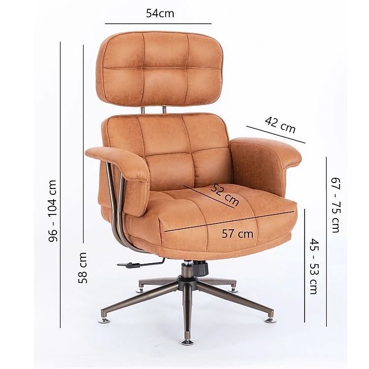 Ghế văn phòng chân có nút cố định đẹp hiện đại CM4610-P Nội thất Capta Ghế làm việc nệm da nappa lưng cao thân xoay gật gù chân thép sơn tĩnh điện màu nâu Luxury Office Chair