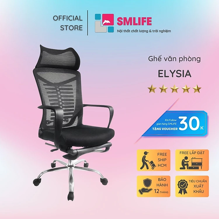 Ghế văn phòng chân xoay lưng cao bọc lưới SMLIFE Elysia