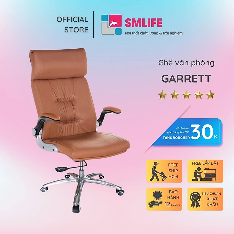 Ghế văn phòng chân xoay lưng cao bọc PU SMLIFE Garrett