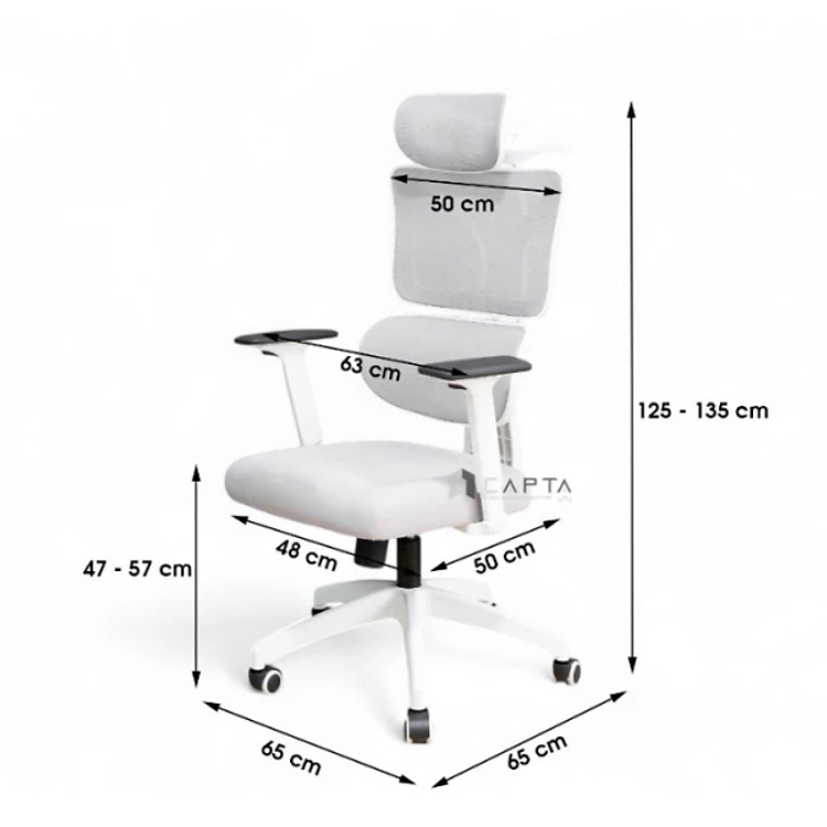 Ghế văn phòng hỗ trợ cột sống lưng CR4331-M Nội thất Capta Ghế công thái học lưng lưới nệm vải tay nhựa chữ T điều chỉnh chân xoay nâng hạ có gác chân