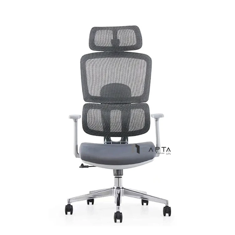 Ghế văn phòng lưng cao có tựa đầu chống mỏi cổ màu xám CM4553-2M Nội thất Capta Ghế làm việc lưng lưới hiện đại nhập khẩu lưng ghế ngả đa chiều tay nhựa chữ T chân xoay thép mạ chrome nâng hạ độ cao office chair hcm