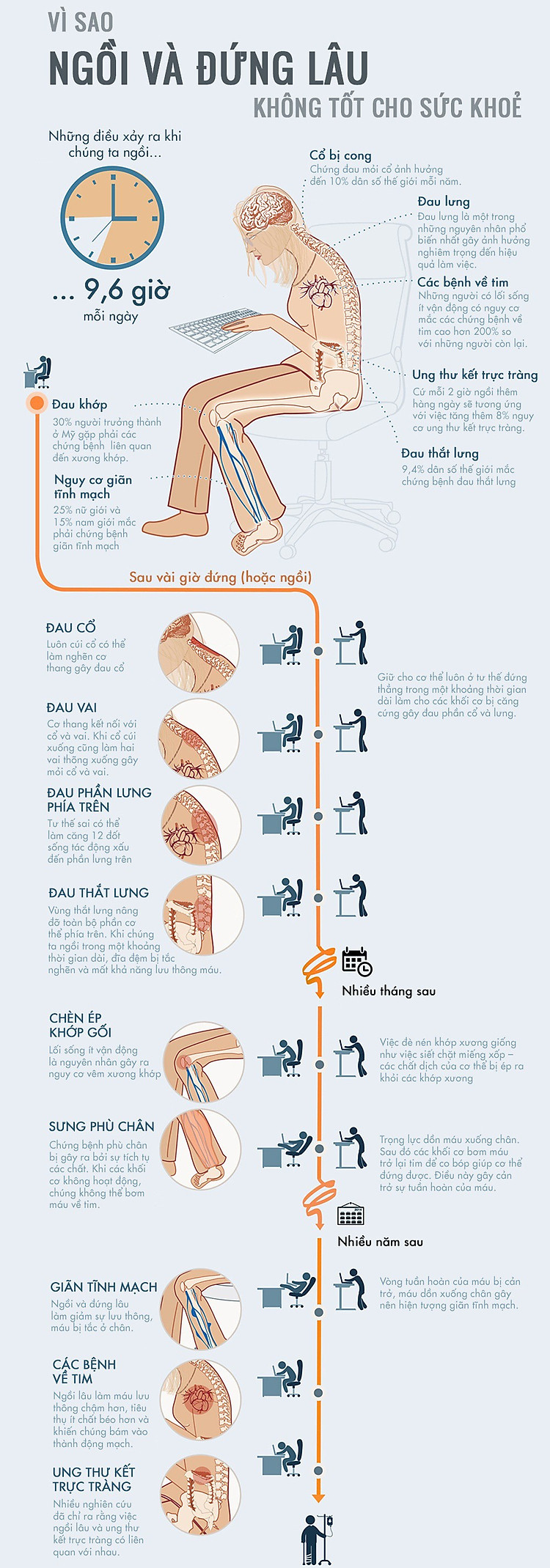 Ngồi làm việc trong thời gian dài đều rất có hại cho sức khỏe: