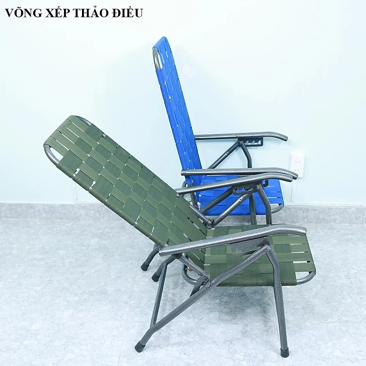 Chất Liệu: khung ghế sơn tĩnh điện chắc chắn, khung ghế dày 9mm, dây dù chịu lực tốt