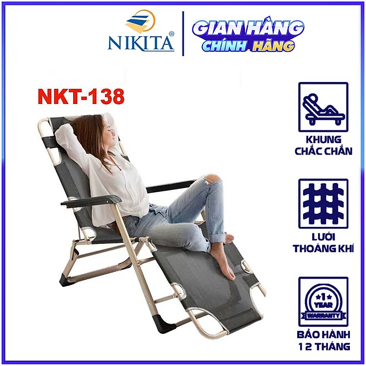 Ghế xếp thành giường, Vải lưới thoáng khí, Khung kim loại sơn tĩnh điện bền bỉ - NIKITA