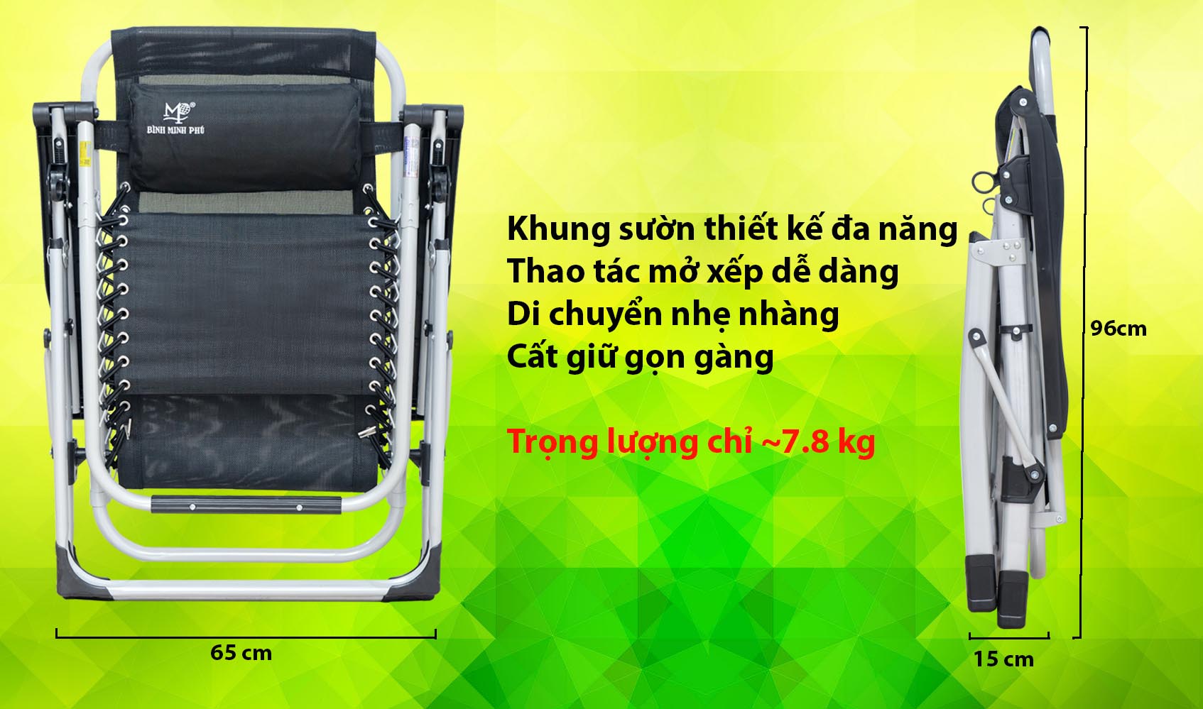 Ghế xếp thư giãn BÌNH MINH PHÚ - Size M - Lưới Chuẩn -Chính hãng