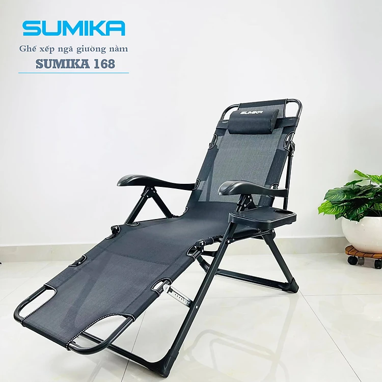 Ghế xếp thư giãn cao cấp SUMIKA 168 - Có thể ngã thành giường nằm, vải lưới Textilene thoáng khí, gối có thể tháo rời, tải trọng 300kg, khung ghế bằng thép không gỉ, đế chống trượt