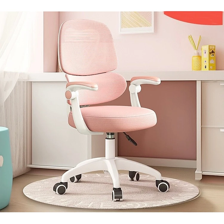 Ghế xoay học sinh chống gù chống cận màu hồng CE1024-M Nội thất Capta Ghế ngồi học bài tại nhà chống gù lưng lưới nệm vải màu hồng tay điều chỉnh khung chân xoay nhựa trắng tại HCM