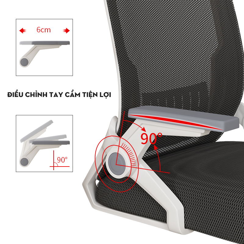 - Phần tựa tay ghế có thể kéo lên xuống tới 90° thư giãn