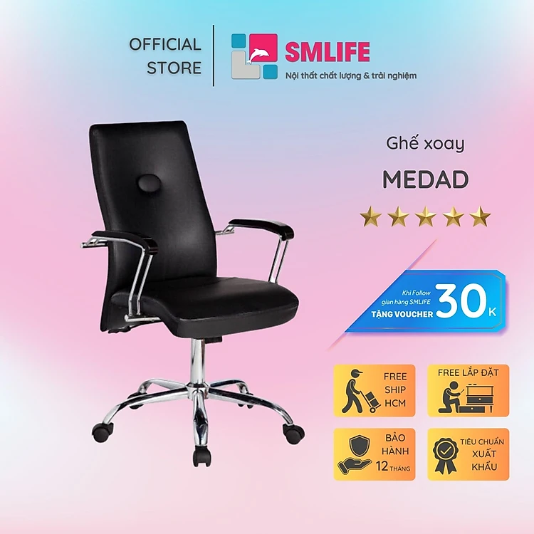 Ghế xoay văn phòng lưng trung rời bọc da SMLIFE Medad