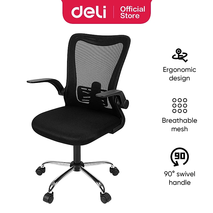 Ghế Xoay Văn Phòng Lưới Làm Việc Công Thái Học Deli - Tay Gập Thông Minh, Có Chỉnh Lưng, Lưới Thoáng Khí, Chân Xoay Tiện Ích, Đệm Ghế Êm Aí, Nhiều Màu - Phù Hợp Học Sinh, Văn Phòng, Game Thủ, Gaming - Hàng chính hãng