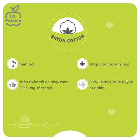 Chất liệu vải tơ sinh học từ cây gỗ Sồi, vải cotton tự nhiên và vải Cotton 100% hữu cơ, giúp quần áo La Pomme có khả năng thoáng khí - hút ẩm xuất sắc, kháng khuẩn - kháng nấm vượt trội; hạn chế tối đa sự phát triển của những vi khuẩn gây mùi khó chịu. Đặc biệt, không gây kích ứng da; do đó đặc biệt phù hợp với bé có cơ địa hay dị ứng.