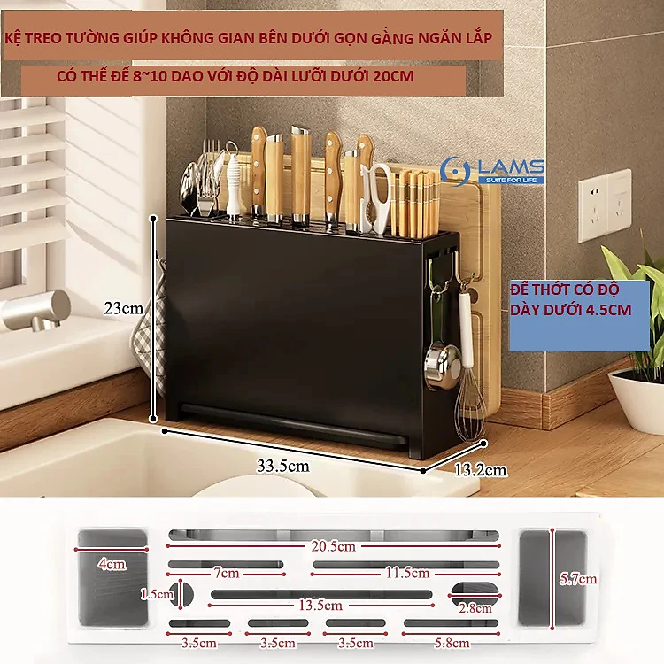 Giá để dao đũa thớt, kệ để dao thớt đũa kéo nhà bếp LAMS 2 màu đen, trắng