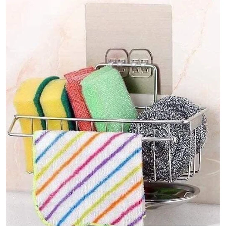 Giá Để Giẻ Rửa Bát, Nước Rửa Chén Đa Năng Inox 304 Có Khay Hứng Nước Và Thanh Phơi Khăn - Tặng Sét 5 Kẹp Miệng Túi