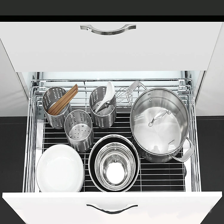 - Bộ ray trượt tích hợp giảm chấn chắc chắn chịu được tải trọng lớn bắt vào hai bên hồi khoang tủ
