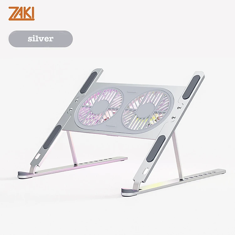 GIÁ ĐỠ DÀNH CHO LAPTOP/MACBOOK/IPAD 11-16 INCH KIÊM ĐẾ TẢN NHIỆT 2 QUẠT LED 7CM ZAKI - P11-F - Hàng Nhập Khẩu