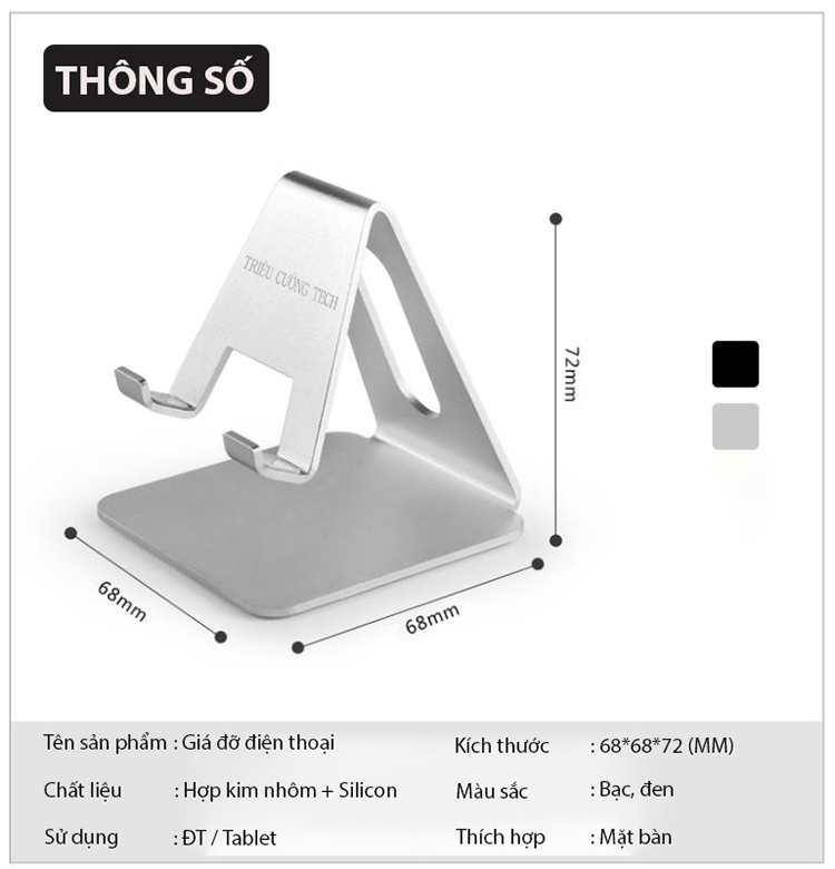 Giá Đỡ Để Bàn Điện Thoại Di Động, Máy Tính Bảng, Ipad Mini Hợp Kim Nhôm KT 6.8x6.8x7.2 Cm Hàng Chính Hãng