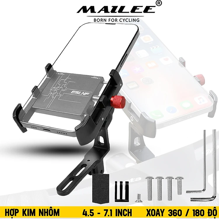 Giá đỡ điện thoại di động hợp kim nhôm cho xe đạp ELZ-01, gắn trên xe đạp touring, điều chỉnh dọc 180 độ, xoay ngang 360 độ, có thể gắn camera - Mai Lee