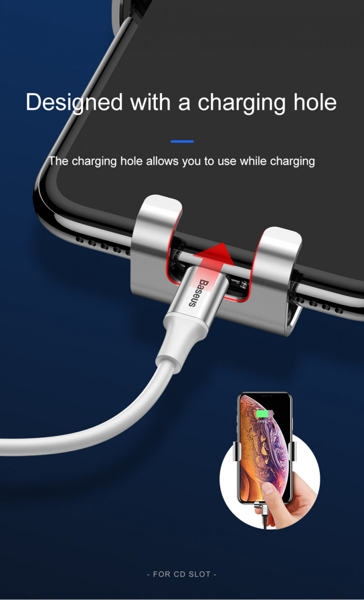 Giá đỡ được thiết kế 1 lỗ bên dưới, hỗ trợ bạn ghim dây sạc. Giúp bạn không phải phiền toái khi mỗi lần sạc phải tháo điện thoại ra khỏi giá.