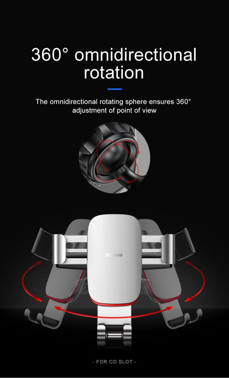 Giá đỡ điện thoại khóa tự động cho xe hơi Baseus Metal kẹp khe CD đóng mở tự động khi để điện thoại vào