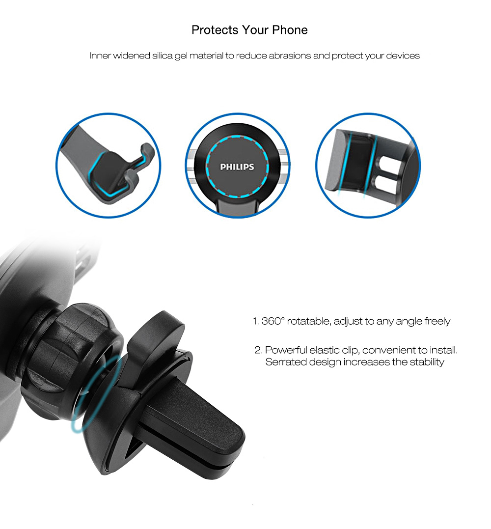 - Giá Đỡ Điện Thoại Trên Xe Ô Tô PHILIPS DLK35008 có thể xoay 360 độ để bạn điều chỉnh góc nhìn thoải mái, cho phép bạn thực hiện các chức năng cuộc gọi rảnh tay và giữ lái xe an toàn.