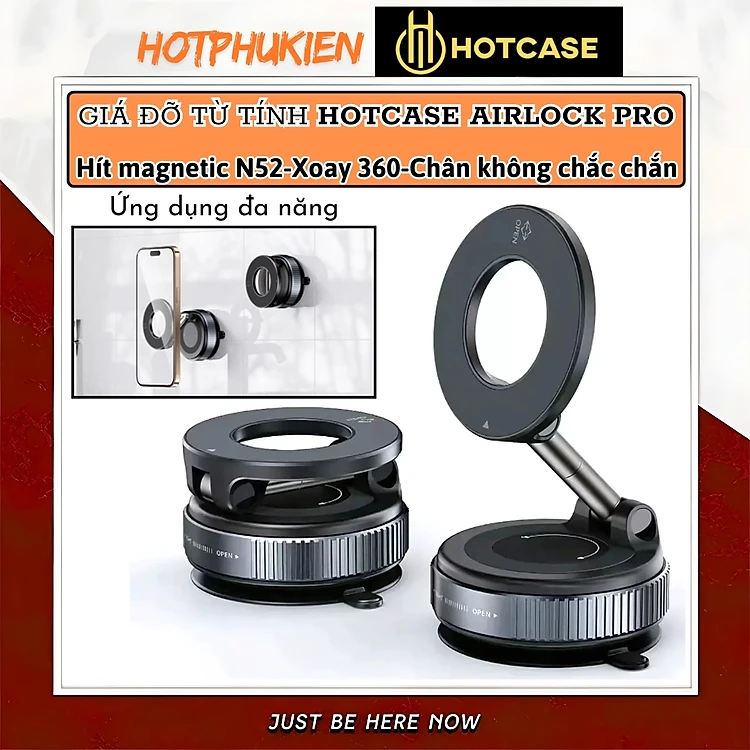 Giá đỡ điện thoại từ tính Magnetic nam châm hút chân không xoay 360 độ cho xe hơi ô tô, bàn làm việc, phòng tắm hiệu Hotcase Airlock Pro Cho iPhone cho Samsung điện thoại - Hàng nhập khẩu