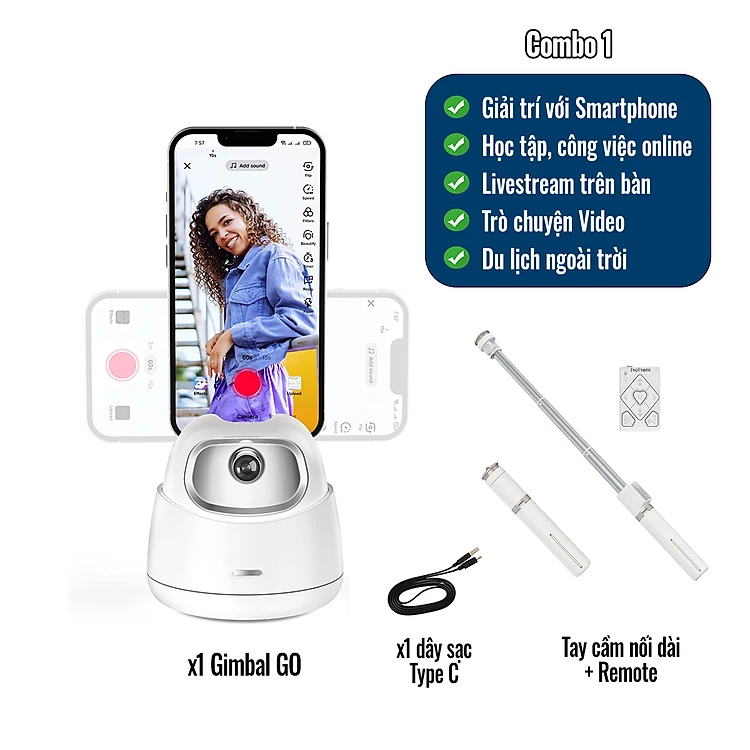 Giá đỡ điện thoại xoay 360 tự động dõi theo chuyển động 2 trục, công nghệ AI không cần APP, không bluetooth, pin cao phiên bản GO, hàng chính hãng