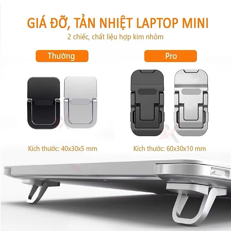 Giá đỡ giá kê tản nhiệt laptop mini siêu mỏng gấp gọn bằng kim loại 2 nấc điều chỉnh- Hàng chính hãng