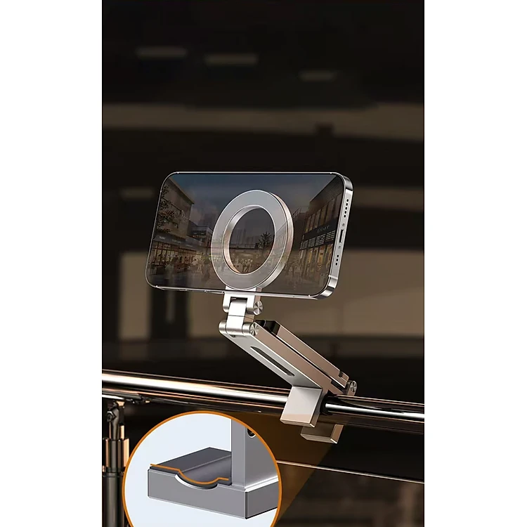 Giá đỡ kệ đỡ điện thoại từ tính gập xoay 360 độ để bàn, kẹp thành bàn, ô tô, máy bay livestream, selfile tự sướng- Hàng chính hãng