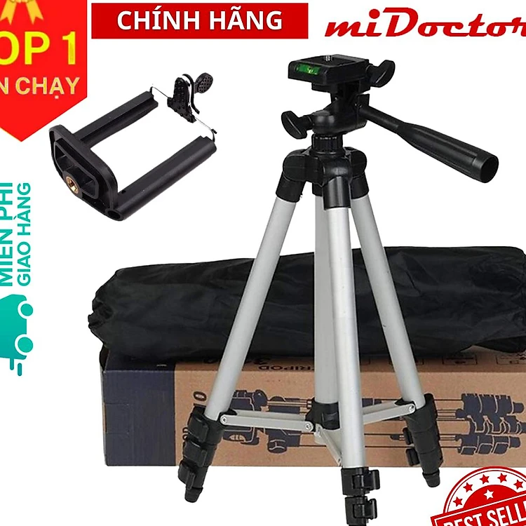 Giá Đỡ Tripod mini 3 Chân Máy Chụp Ảnh (Tặng Kẹp Điện Thoại) Hỗ Trợ Livestream, Quay Tiktok, Chụp Ảnh - Hàng Chính Hãng miDoctor