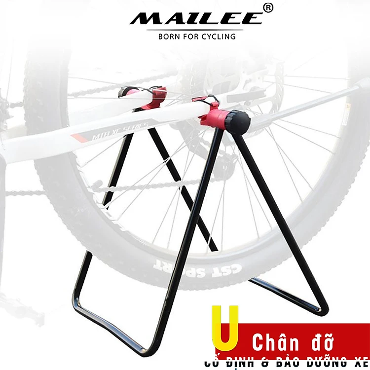 Giá đỗ xe đạp chân chóng cố định chữ U móc đỏ giúp dựng đứng xe đạp để sửa chữa/ bảo dưỡng, khung kim loại, móc nhựa ABS (1 cỡ có điều chỉnh) - Mai Lee