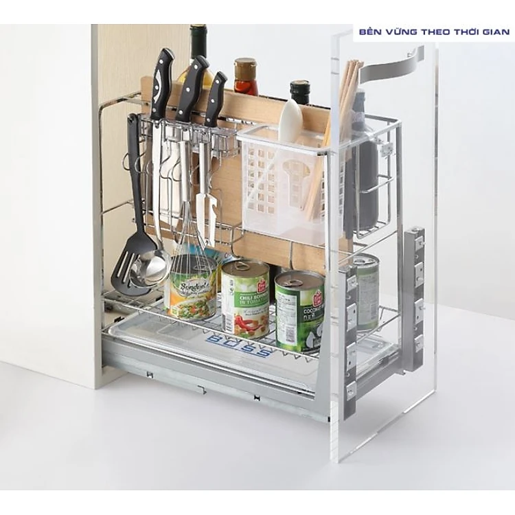 Giá đựng dao thớt Tundo DSCT1630 nan dẹt ray âm giảm chấn Boss R260*C475*S455 mm