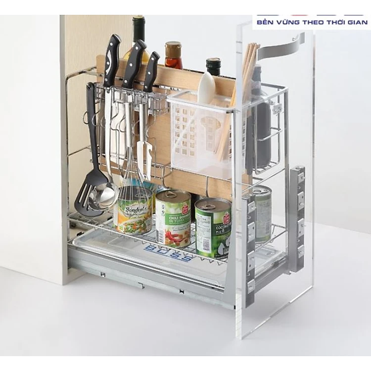 Giá đựng dao thớt Tundo DSCT1640 nan dẹt ray âm giảm chấn Boss R360*C475*S455 mm