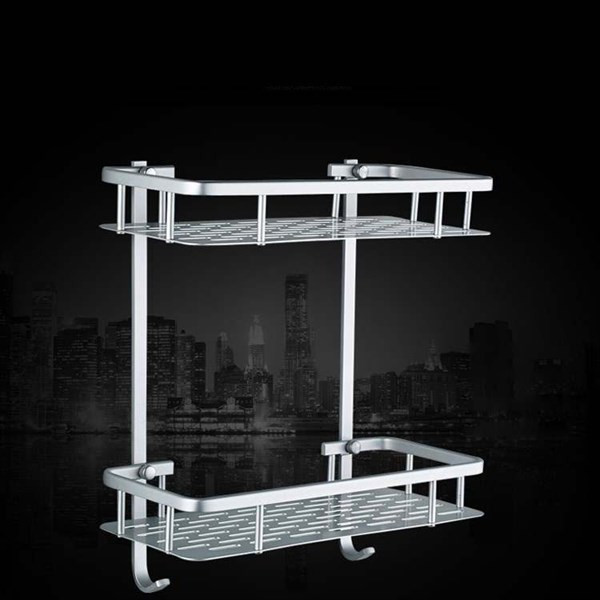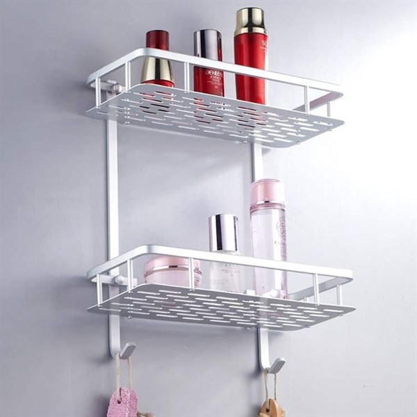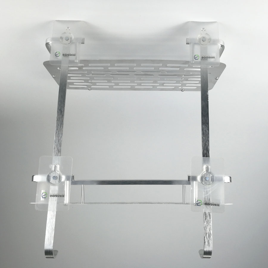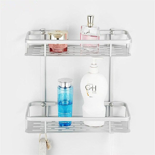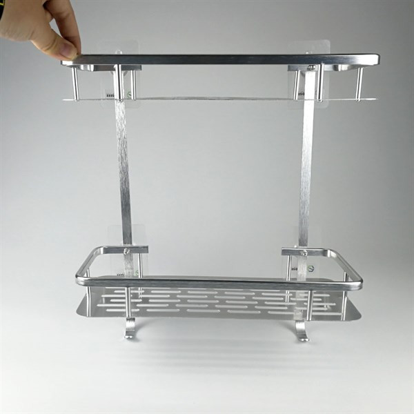 Giá nhôm hình chữ nhật 2 tầng treo nhà tắm không cần khoan tường GS0076