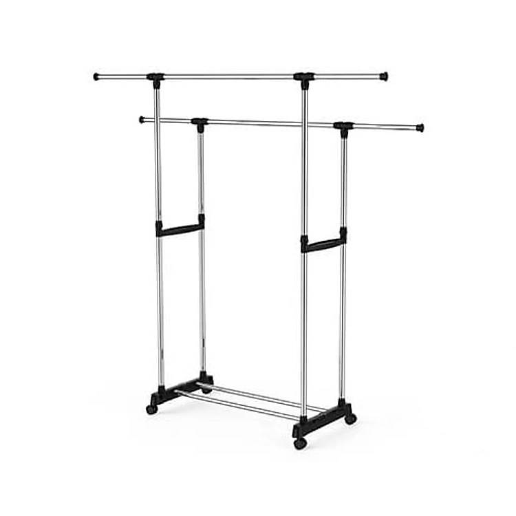 Giá phơi quần áo NiNDA R217 2 tầng có bánh xe thiết kế kiểu đôi, giúp bạn phơi/treo nhiều quần áo hơn nhưng chỉ tốn một diện tích nhỏ. Sản phẩm sau khi lắp đặt sẽ có cấu trúc gồm 2 thanh phơi được thiết kế song song trên dưới, giúp quần áo khô nhanh chóng. Dưới chân có 2 thanh chắn song song để bạn có thể kết hợp phơi giày, dép.