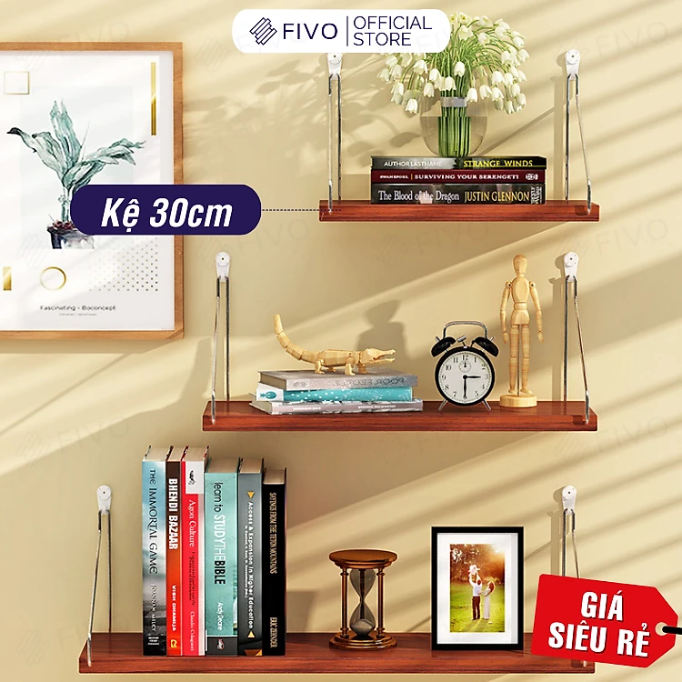Giá Sách Treo Tường Trang Trí FIVO Mã FB40 Không Cần Khoan Tặng Kèm Đinh 4 Chân Chịu Lực Lên Đến 10KG Với Móc Inox Dễ Dàng Gắn Lên Tường
