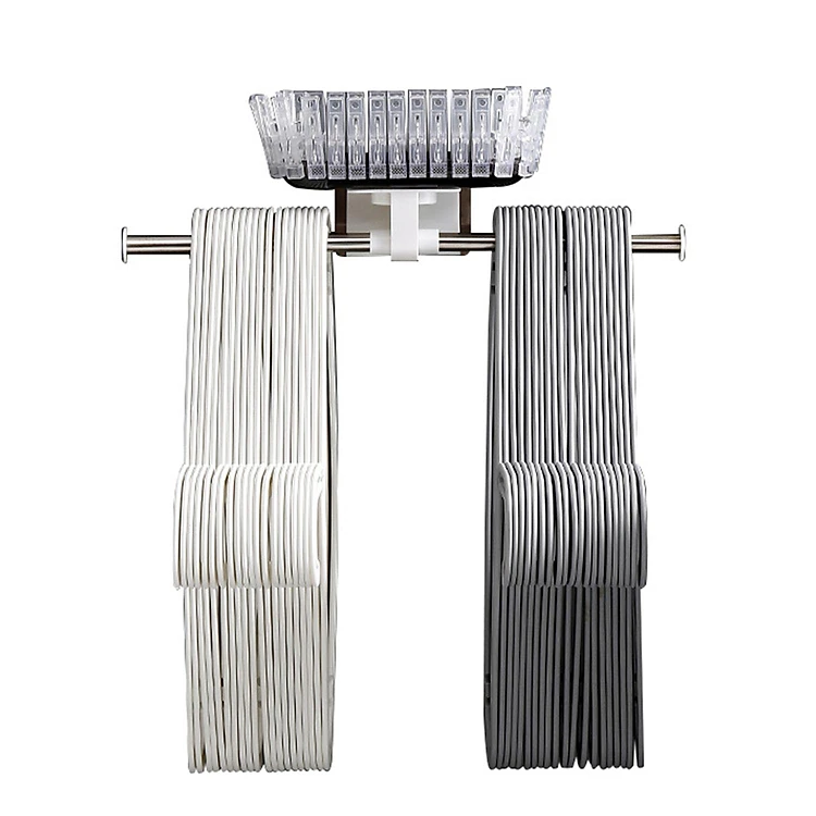 Giá treo móc quần áo sử dụng vật liệu Thép không gỉ chất lượng cao, thiết kế tự dính, 2 đầu t hanh treo có nắp chống trượt