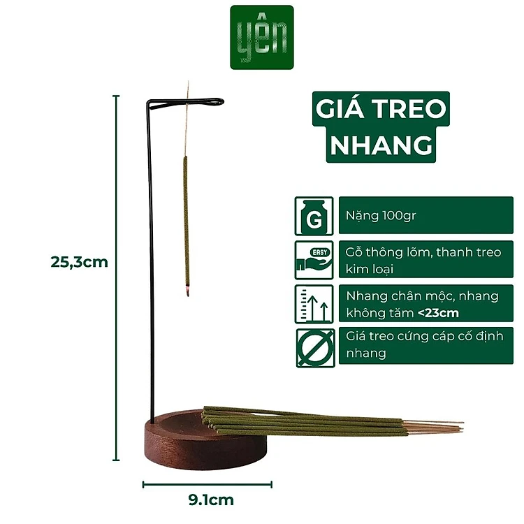 Giá Treo Nhang Thảo Mộc Yên Bằng Thanh Kim Loại Đế Gỗ Thông Trang Trí Tâm Linh Thờ Cúng Quà Tặng