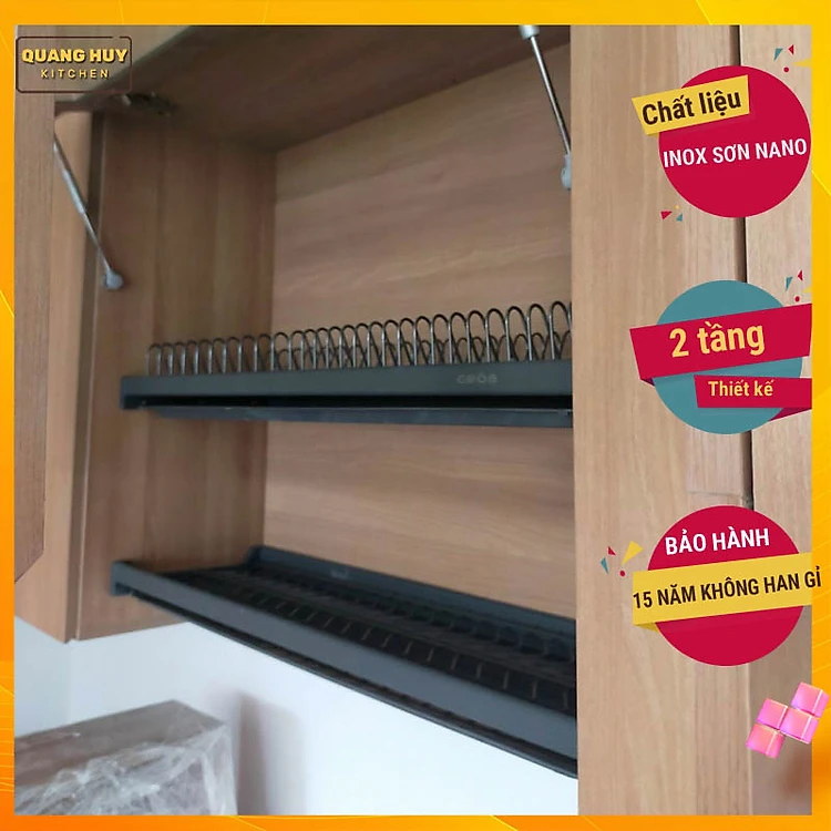 Giá úp bát 2 tầng cho tủ bếp trên inox sơn Nano bảo hành 15 năm han gỉ